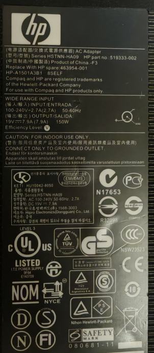 Punjač za HP laptop, 150W, dodatno plavi adapter