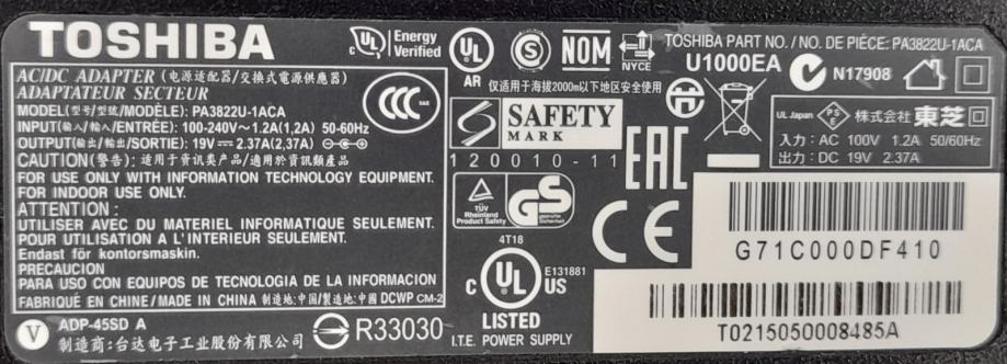 Toshiba adapter model PA3822U-1ACA