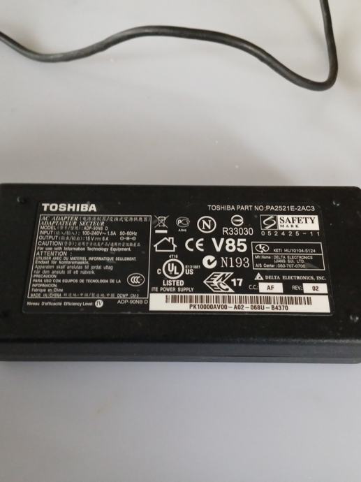 Toshiba punjac za laptop prodajem za 10 eura. Voltaza je 15 v, snaga 6 a