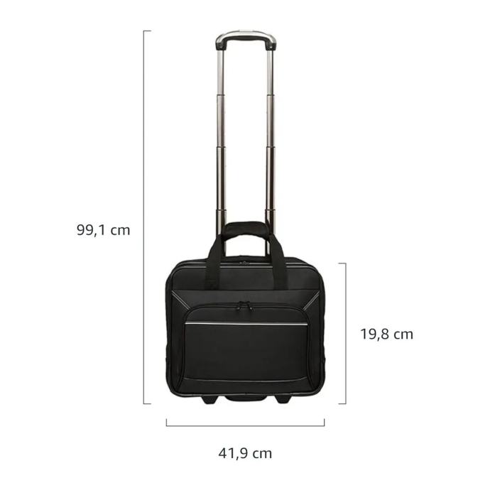 Torba je lagana, ali čvrsta, s teleskopskom ručkom na izvlačenje i glatko kotrljajućim kotačima, što olakšava kretanje kroz zračne luke i gradske ulice.
