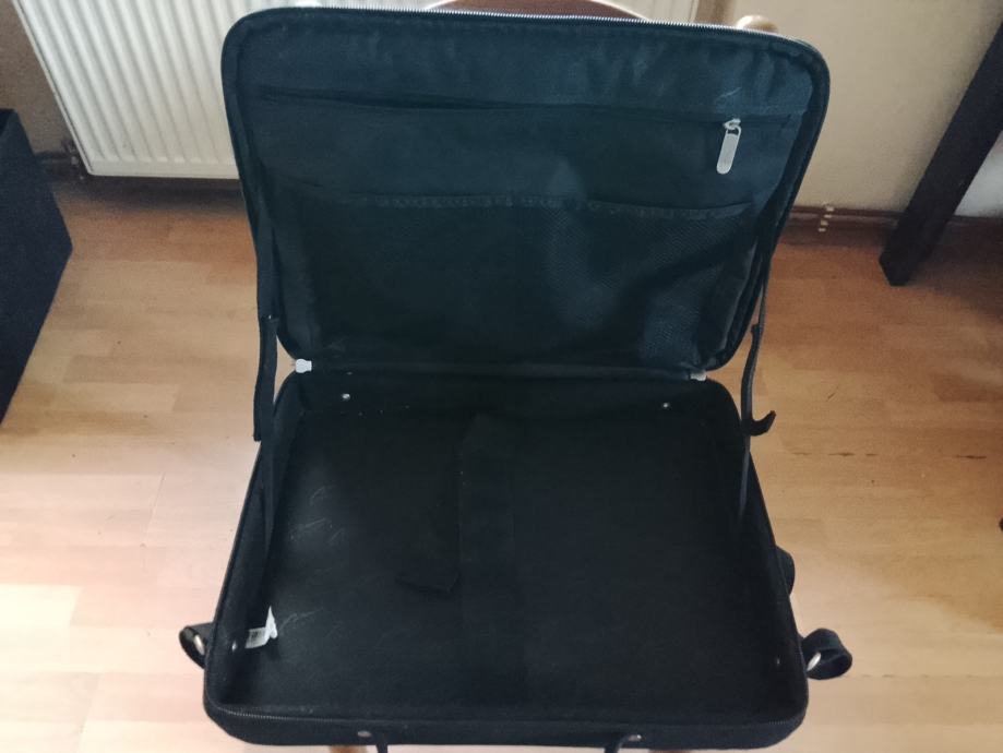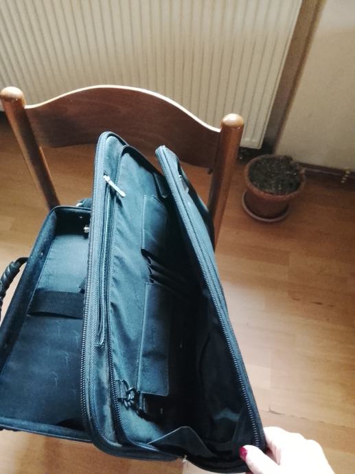 Prodajem laptop torbu u crnoj boji. Torba ima glavni pretinac s dobrom zaštitom za laptop, dodatne džepove za dokumente i sitnice, te pojačane uglove za dodatnu zaštitu. Može se nositi ručkama ili preko ramena pomoću podesivog remena. Praktična i funkcionalna za svakodnevnu upotrebu.