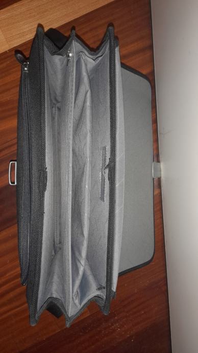 Prodaje se poslovna torba za dokumente i laptop/tablet, proizvođača Rocanto, crne boje, korištena, ali u odličnom stanju. Torba ima ukupno tri pretinca (npr. jedan za laptop i dva za dokumente) te prednji džep sa zatvaračem. Vanjske dimenzije torbe su 43x34 cm.