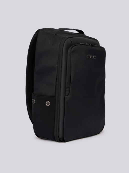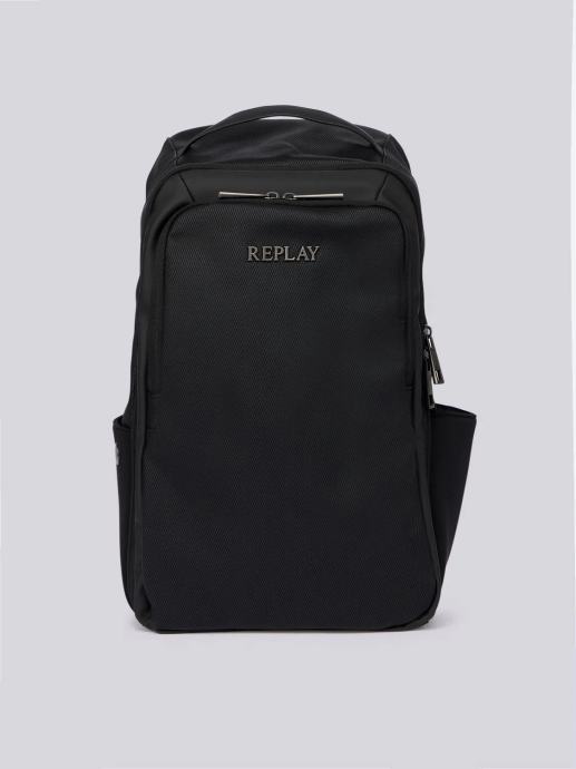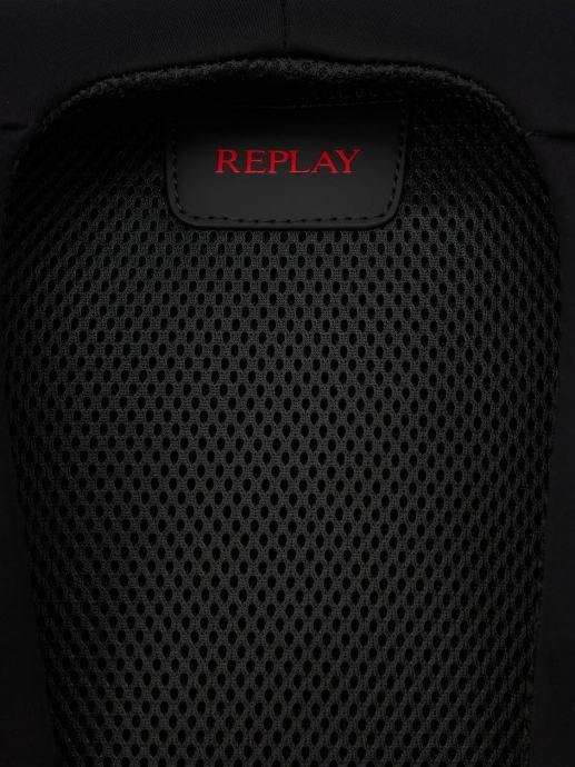 Jednobojni ruksak kvadratnog oblika izrađen od PU materijala s efektom gume, s prozračnom tkaninom na leđima s logotipom brenda, džepom, gornjom ručkom i podesivim naramenicama. Ovaj modni dodatak ima dvosmjerno patentno zatvaranje na vrhu, koje se nalazi i u prednjem odjeljku ukrašenom utisnutim natpisom Replay. Ovaj modni dodatak ima dva praktična bočna džepa ukrašena imitacijom perforiranih gumba. Širina 32 cm x Visina 47 cm x Dubina 18 cm.