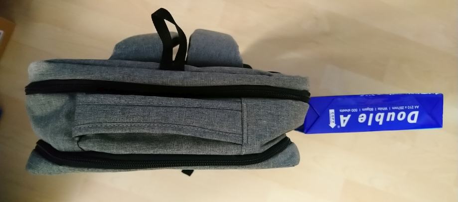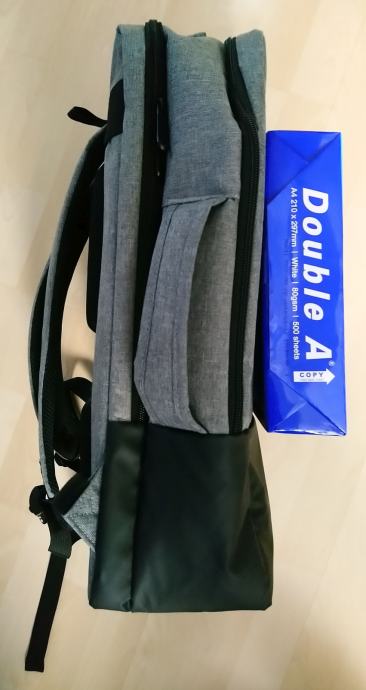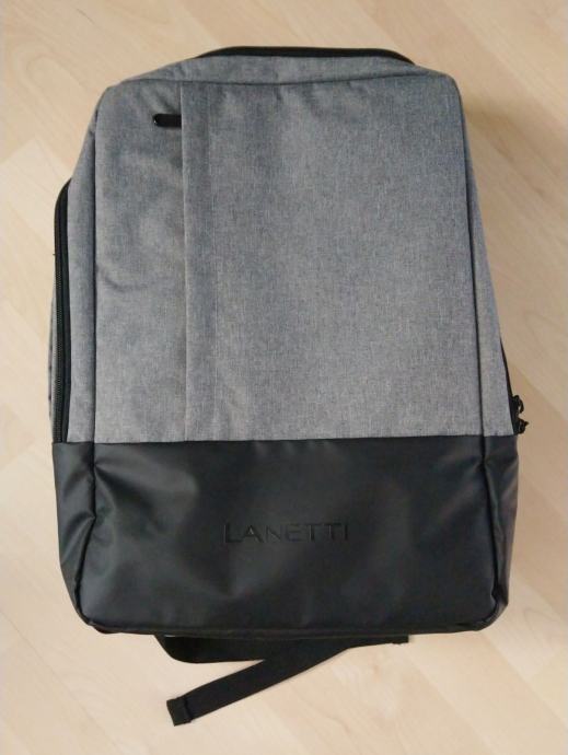 Dva velika pretinca, jedan s odjeljkom za laptop. Oba pretinca s odjeljcima za sitnije stvari. Na prednjoj strani jedan uski pretinac.