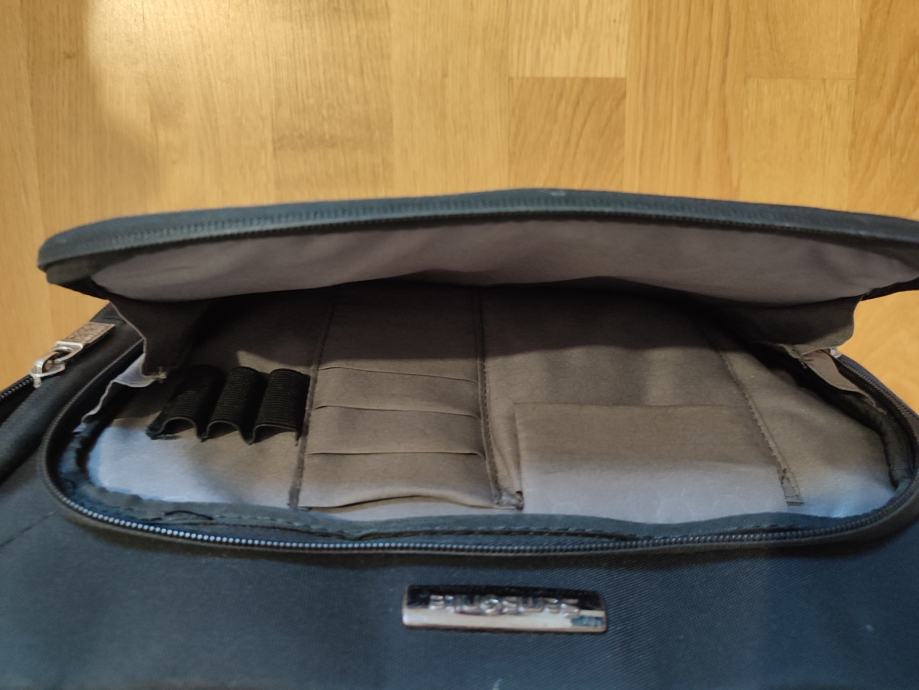Prodajem rabljenu Samsonite torbu za laptop do 14 inča s puno praktičnih pretinaca. Stanje 7/10. Jedino fizičko oštećnje je par centimetara oparan rub ciferšlusa, ali se može bez problema zatvoriti i u tom položaju se to ne vidi.