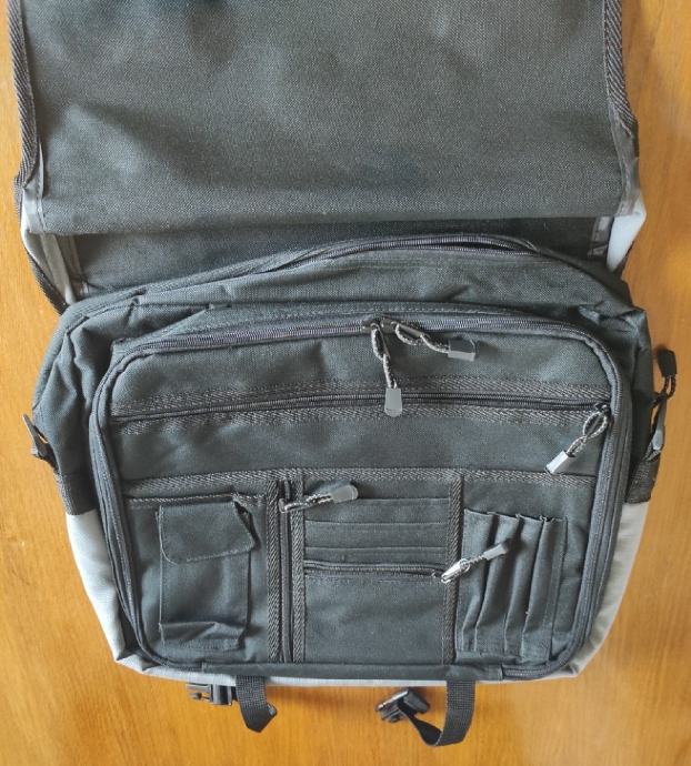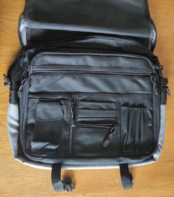 Od crne tkanine, sa brojnim pretincima i mjestima za dokumente.