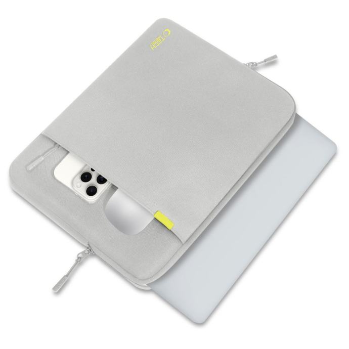 Visoku razinu sigurnosti jamči troslojna konstrukcija navlake: vanjski sloj od visokokvalitetnog poliestera, pjena koja apsorbira udarce i unutarnja podstava od mikrofibre. Korišteni materijali učinkovito štite uređaj od udaraca, ogrebotina i drugih mehaničkih oštećenja.