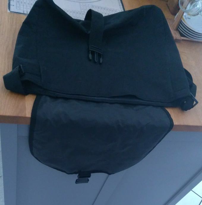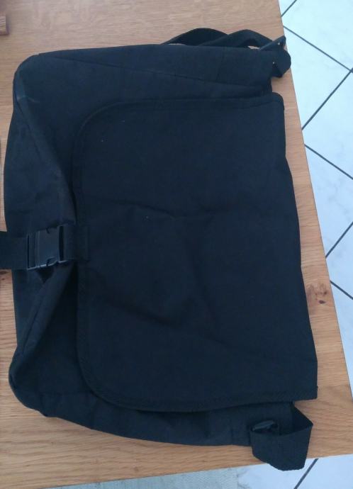 Crna torba za laptop s jednim duljim remenom. Moguće je prenositi laptope različitih veličina. Malo korištena i dobro očuvana.
