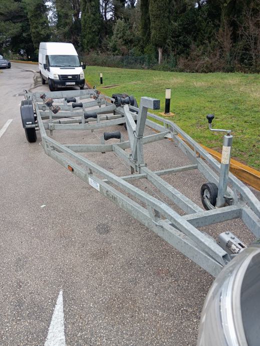 Prikolica 3500 kg, nikad u moru, kao nova, Pogodna za sve vrste plovila . Puno podešavanja. Gume odlične. 10 m. Registrirana godinu dana.