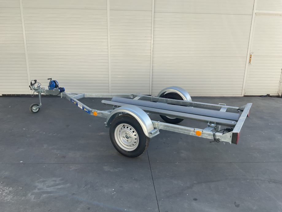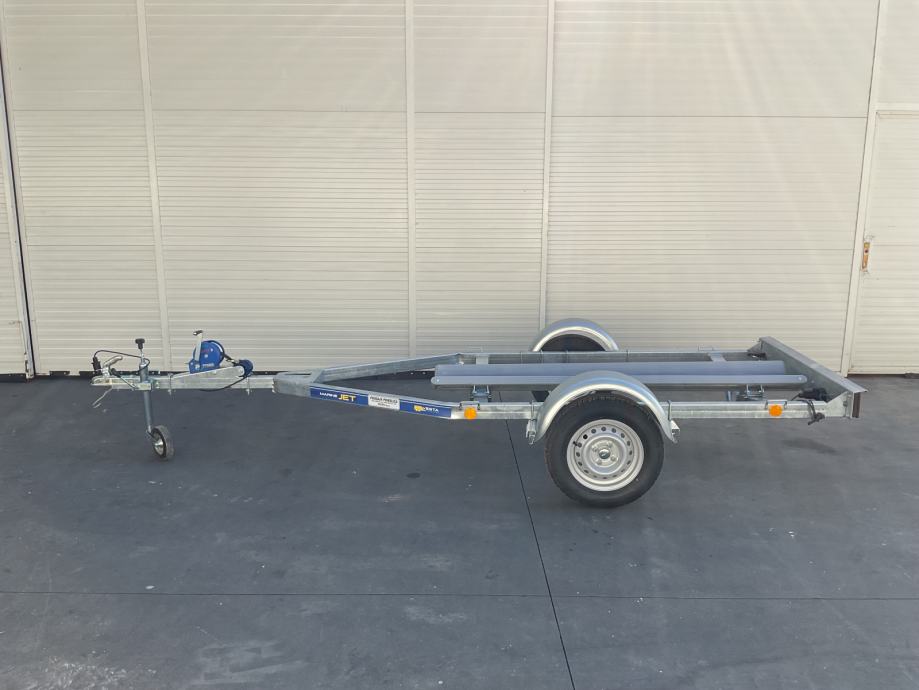 Marine Jet prikolice su specijalno dizajnirane prikolice namjenjene prijevozu Jet plovila. Laka prikolica za prijevoz Jet plovila s vozačkom dozvolom B kategorije. Prikolica je rezultat vrhunske tvorničke izrade, ističući se visokokvalitetnom vruće cinčanom šasijom i originalnim dijelovima renomiranog njemačkog proizvođača Knott. Njena izuzetna čvrstoća i trajnost jamče pouzdanost tijekom transporta. Uz to, olakšan i siguran utovar Vašeg Jet-a iz vode omogućuje Vam kvalitetan vinc Knott. Dvije podesive gumene skije ne samo da čuvaju Vaš Jet od mogućih ogrebotina, već pružaju i stabilnost tijekom utovara,osigurava sigurnu vožnju cestom te minimalizira rizik od prevrtanja. Visoka kvaliteta izrade, sigurnost u prometu, osigurani svi rezervni dijelovi te garancija od jedne godine čine ovu prikolicu pouzdanim partnerom za siguran i udoban transport Vašeg Jet plovila.