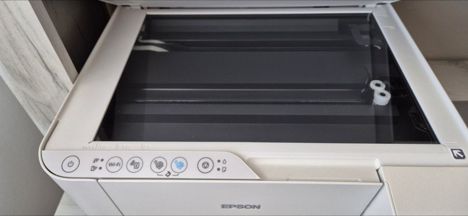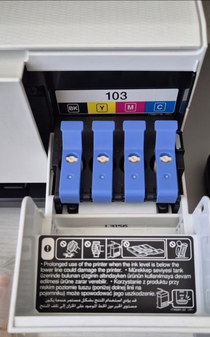 Crno bijelo ispisuje isprekidano, u boji ne. Tinte ima dovoljno (max).