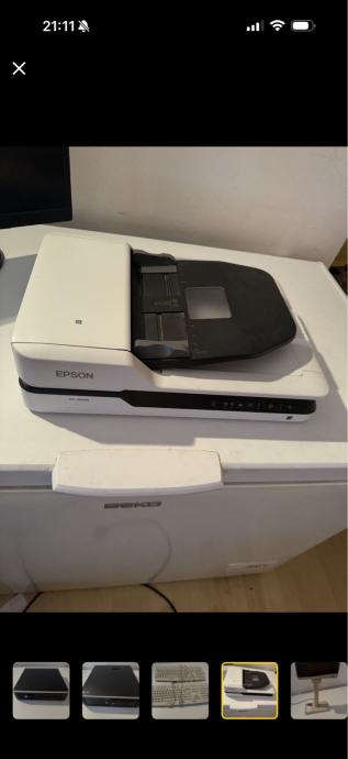 Prodajem Epson skener u rabljenom stanju. Skener je bijele boje s crnim gornjim poklopcem. Radi se o flatbed skeneru s automatskim podavačem dokumenata (ADF), što omogućuje skeniranje većeg broja stranica odjednom. Uređaj je u funkcionalnom stanju i pogodan za kućnu ili uredsku upotrebu.