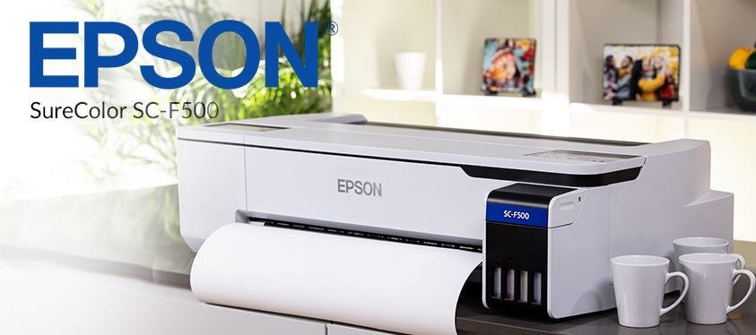 Epson SureColor SC-F500. Epsonov novi produkcijski sublimacijski printer iz role kompaktnog formata od 24´. Ima namjenu ispisa transfera za apliciranje na razne sublimacijske materijale. Epson SureColor SC-F500 profesionalni je digitalni desktop sublimacijski pisač s role razvijen posebno za proizvodnju visokokvalitetnih ispisa tekstila i promotivnih materijala. Pisač je dio cjelovitog Epsonovog paketa, sve proizvodi i podržava jedan proizvođač, čime se jamči besprijekoran rad svih elemenata. Epsonove ispisne glave PrecisionCore TFP jamče visoku protočnost i dugi vijek proizvodnje, dok kapljice tinte promjenjive veličine poboljšavaju visokokvalitetne rezultate.
