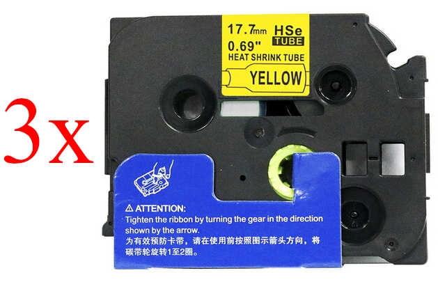 Komplet Brother HSe-641 / HS-641 / PT / P-Touch 17.7mm, termoskupljajuća cijev (heat shrink tube), zamjenske trake (cijevi) (3) - crni ispis / žuta traka (cijev)