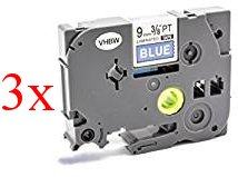Komplet Brother TZe-525 / TZ-525 / PT / P-Touch 9mm zamjenske trake (3) - bijeli tekst / plava traka