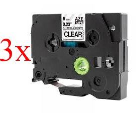 Komplet Brother TZe-S111 / TZ-S111 / PT / P-Touch 6mm, jako ljepilo (strong adhesive), zamjenske trake (3) - crni ispis / prozirna traka