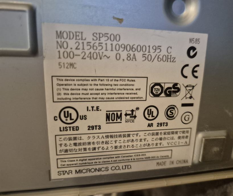 PRODAJEM: POS printer STAR SP500 za ispis računa.