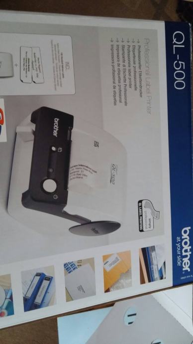Prodajem printer Brothers QL-500, printer je savrsen za tiskanje etiketa i naljepnica, dobije se uz njega traka za tiskanje etiketa (uska traka) i siroka traka sirina 60 mm i ostalo oko 28 metara duzine trake.