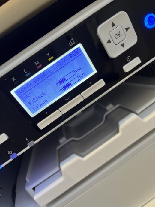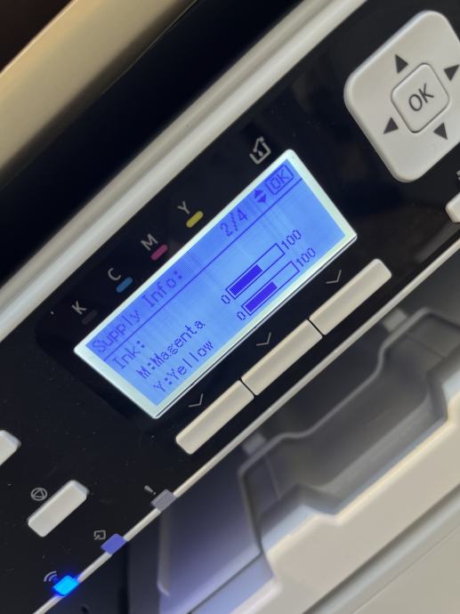 Prodaje se navedeni printer, korišten 5 mjeseci..Stanje boja vidljivo na fotografijama :)