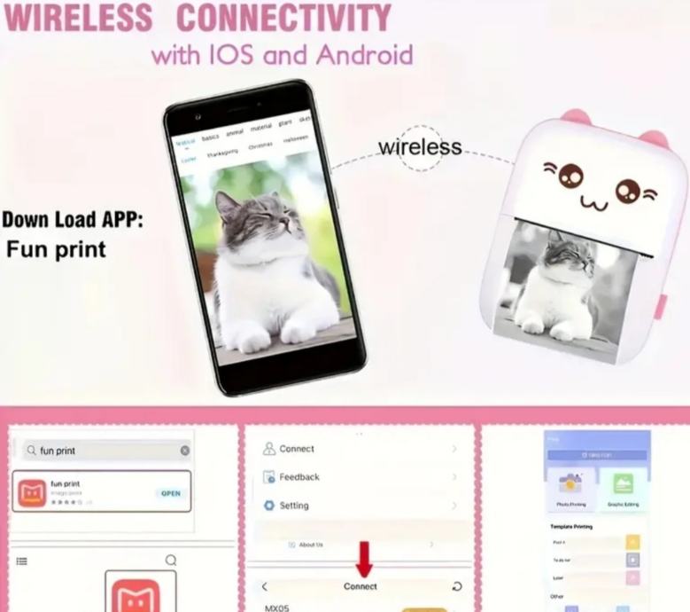 Prodajem mini foto printer za fotke, za mobitel, cijena 15€, saljem pouzecem ili preuzmete osobno u Crikvenici, Rijeci ili ZG.
