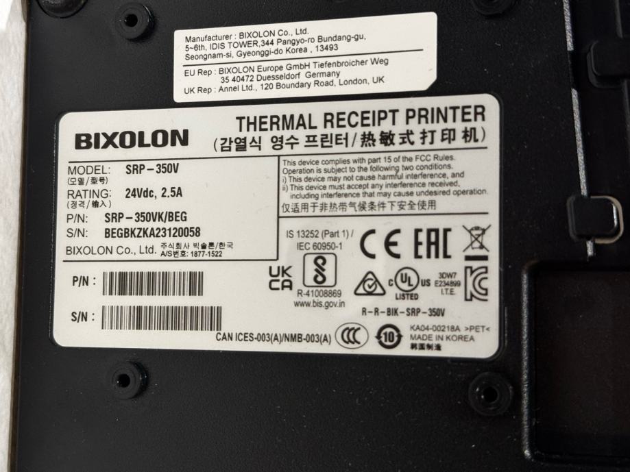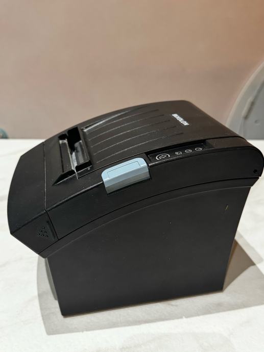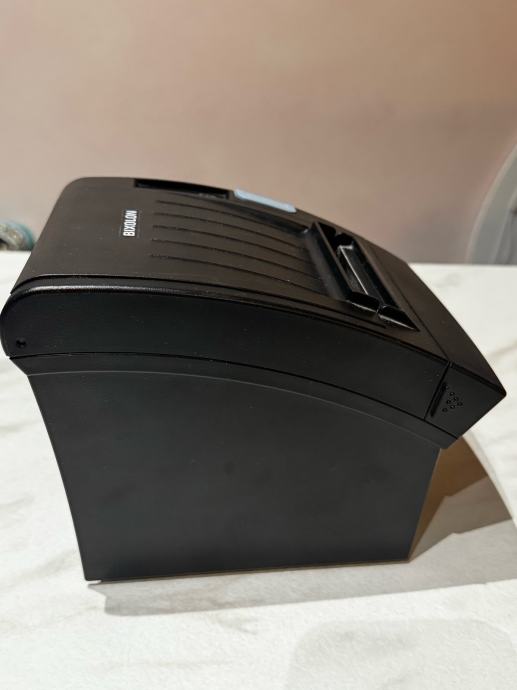 Prodajem rabljeni termalni printer BIXOLON model SRP-350V. Ovaj kompaktni POS printer crne boje idealan je za ispis računa u trgovinama, ugostiteljskim objektima ili drugim poslovnim prostorima. Uređaj radi na 24V DC, 2.5A i dolazi s potrebnim priključcima na stražnjoj strani. Termalni printer ne zahtijeva tintu ili toner, već koristi termalni papir za ispis, što ga čini ekonomičnim za korištenje.