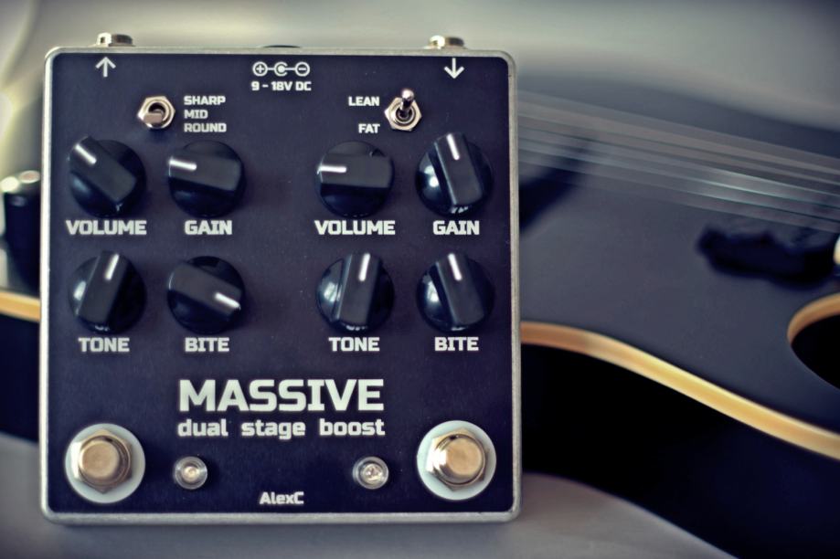 The MASSIVE by AlexC Pedals is based on two classic circuits that have been tweaked and modified for high gain boosting application.