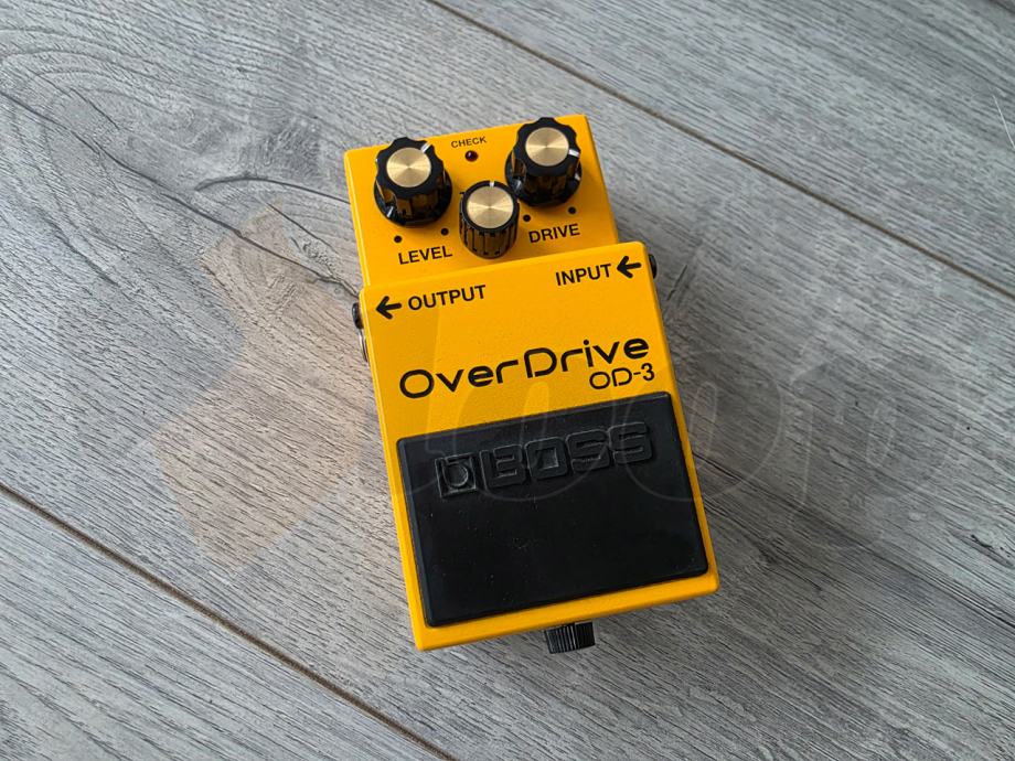 iznimno očuvana overdrive pedala Boss OD-3, koja donosi topli, kremasti overdrive; nasljednik legendarnog OD-2.