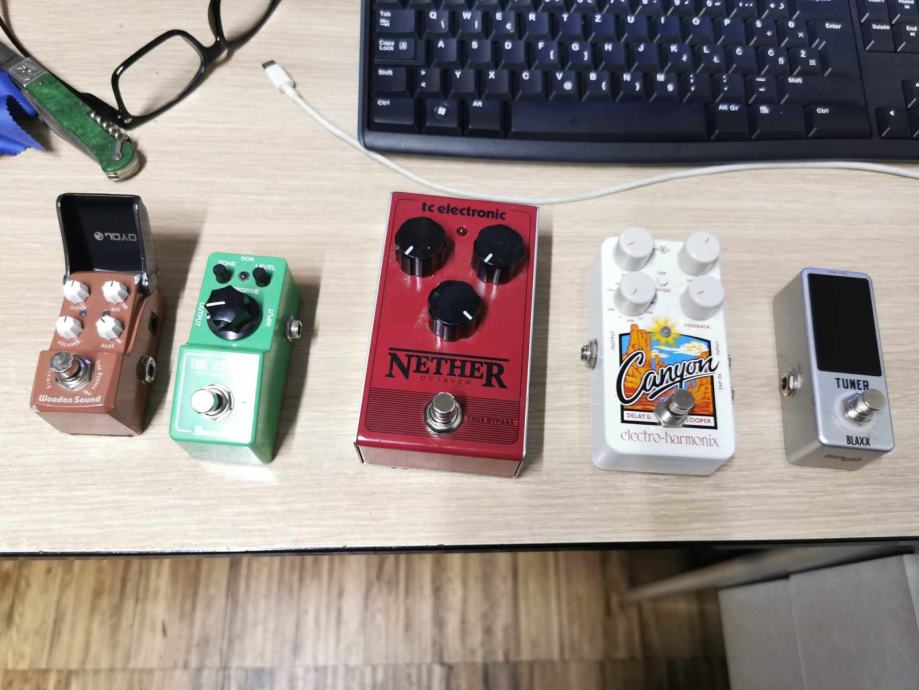 oktaver voodu 35e, , Elektroharmoniks canjon 130e, joyo wooden sound 36 e, tuner 20e zvati 098653119