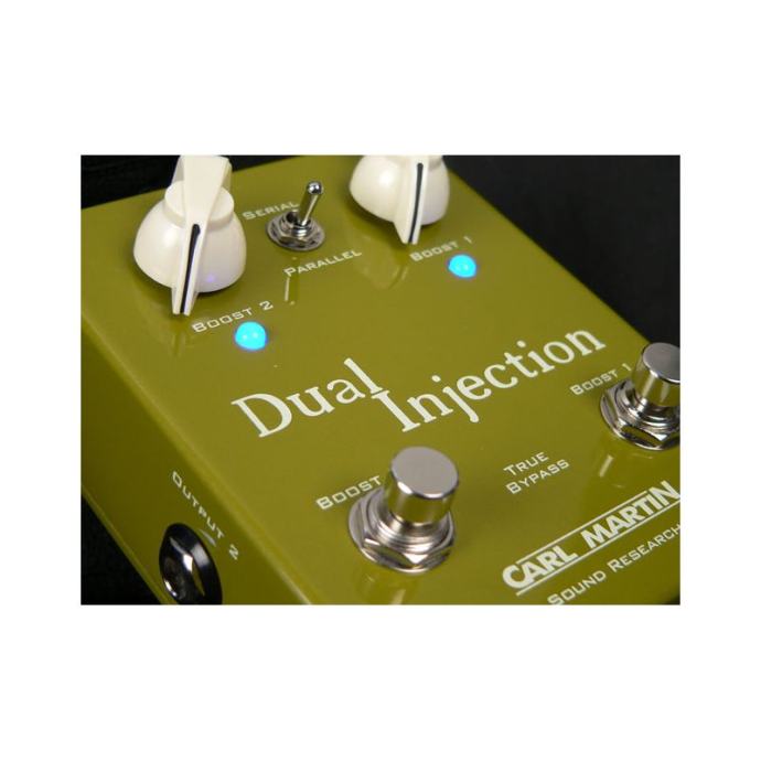 Carl Martin Dual Injection gitarska efekt pedala. Svaki gitarist ima trenutke kad razmišlja: Kako raditi sve isto, a ipak ostati "analogan"? Carl Martin uzeo je kvalitetni i transparentni boost iz Carl Martin Hot Drive’n Boost pedale i oba stavio u jednu pedalu. Svaka ima svoju level kontrolu i ‘True Bypass’ prekidač + dodatni prekidač za odabir između Serial i Parallel moda.