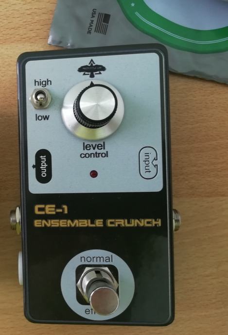 Ensemble crunch pedala, domet joj je clean boost u low mode do crunchy drive poznatog CE1 chorusa tj. njegovog preampa u high mode, mozevse nabrijati do fuzz sounda na maximum, djelujevi kao lagani transparentni compressor, odlicno stanje novo.