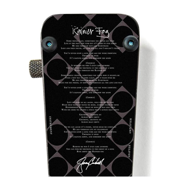 Super popularni Jerry Cantrell Cry Baby Wah upravo je dobio novi izgled, a radi se o povratku korijenima majstora riffa iz Seattlea. Crna završna obrada podsjeća na vizualne vibracije albuma Rainier Fog grupe Alice in Chains, dok se prilagođeni dizajn gazišta temelji na Jerryjevoj plemenskoj tetovaži orke koju je izradio umjetnik Coast Salish Joe Wilson. Kao slatki završni detalj, donja ploča sadrži cijeli tekst pjesme "Rainier Fog" sa gore spomenutog albuma.