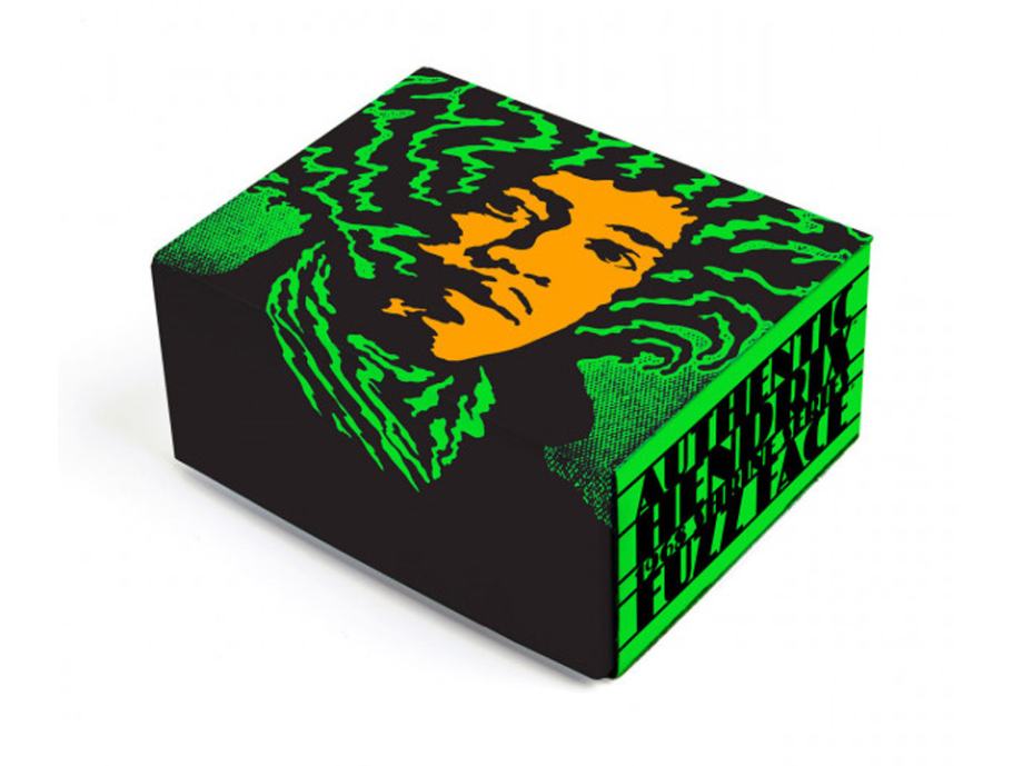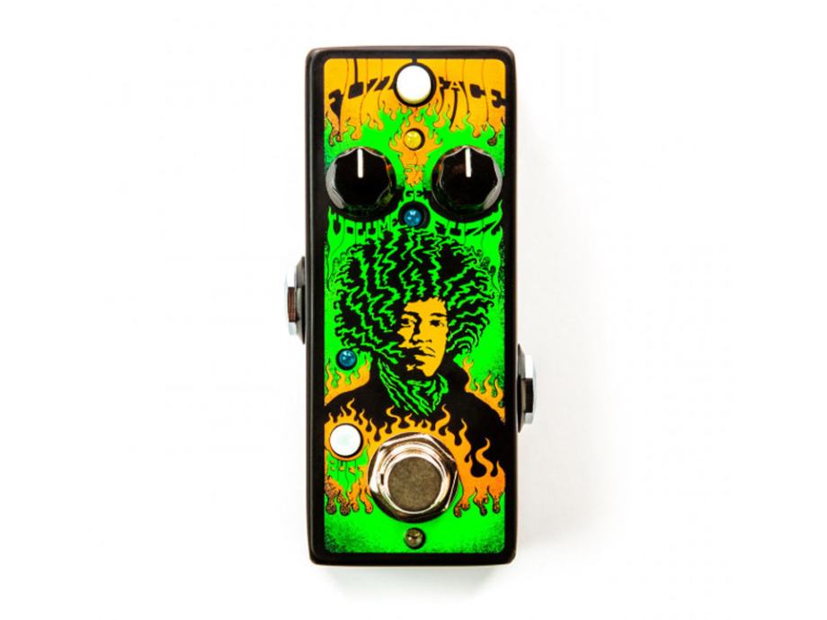 DUNLOP JHMS1 Fuzz Face Distortion specijalno izdanje odaje počast legendarnom Jimiju Hendrixu s prilagođenom završnom obradom koja sadrži poznati umjetnički plakat za koncert Shrine Auditorium iz 1968. proslavljenog rock umjetnika Johna Van Hamersvelda, koji je preradio Simon Berndt iz One Horse Town Illustration. Oblaci zelenog i plavog plamena evociraju vatrenu strast i metafizičko glazbeno iskustvo koje je Jimi Hendrix dao svijetu, dok psihodelična slova hvataju vibru ere.