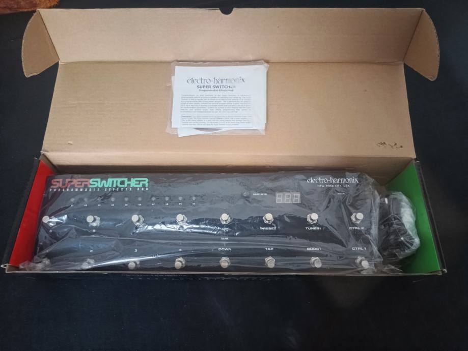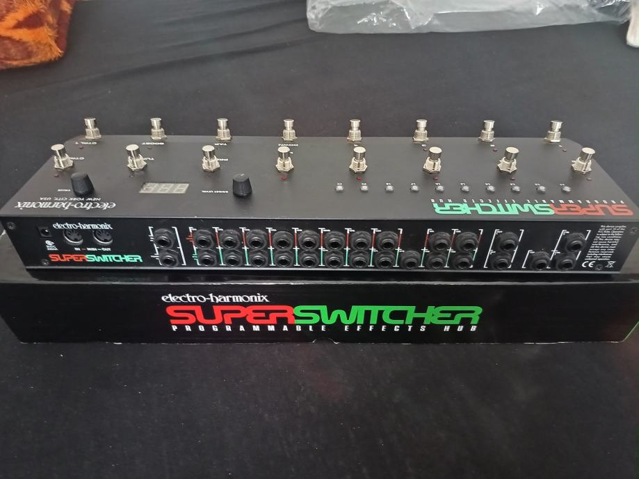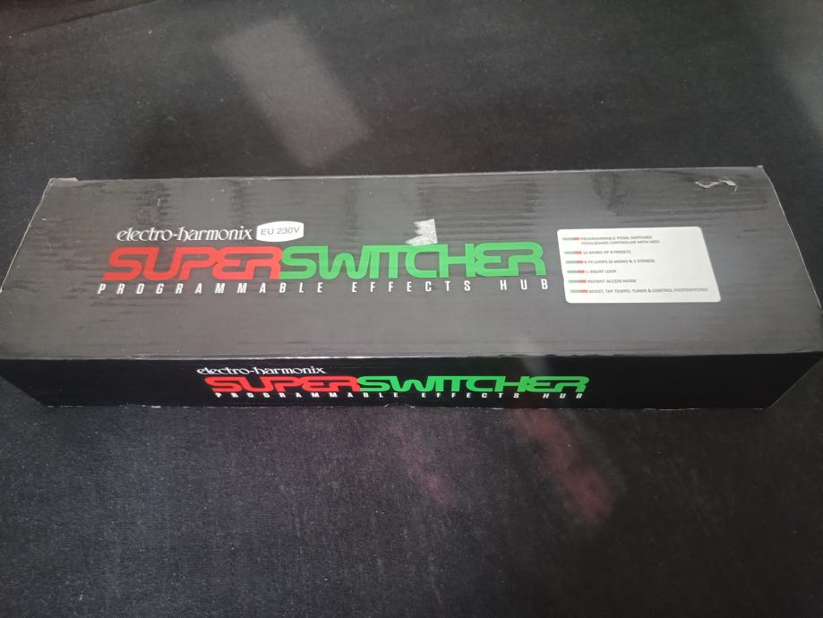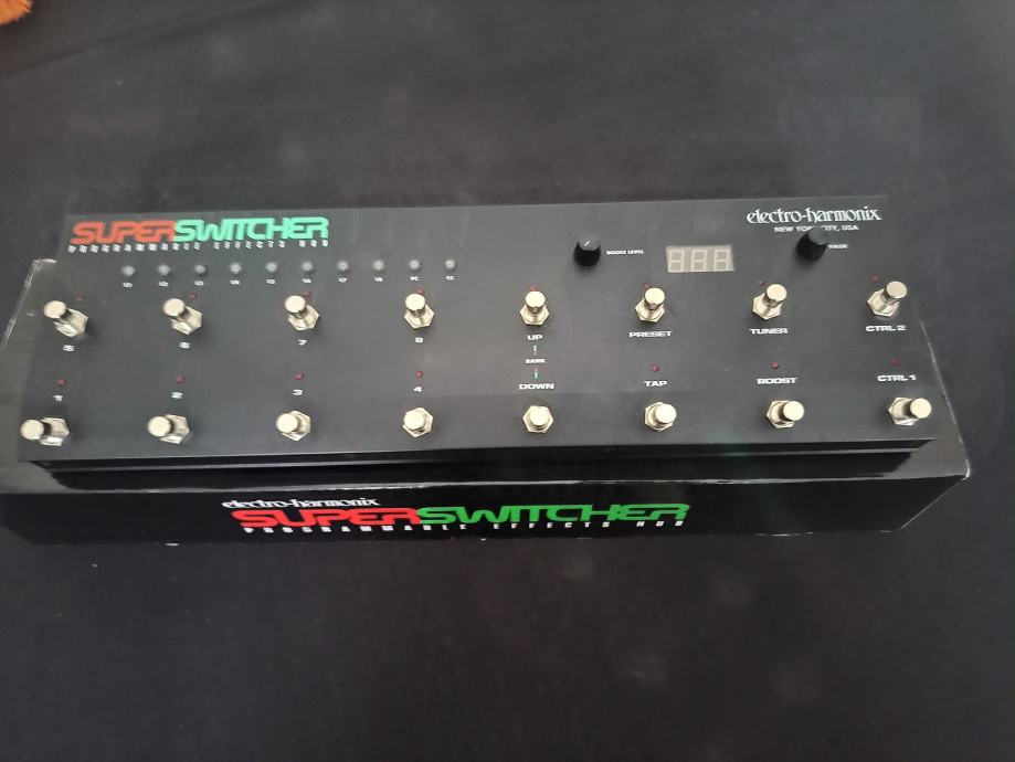 The EHX Super Switcher, as its name implies, offers a powerful solution for players who are tired of “tap dancing” around their pedalboard. In effect, it moves all of your pedals to your pedalboard’s front row while delivering control of them with one button push. The result is that it puts the player back in control of an unruly pedalboard! It’s also perfect for any guitarist using the “four-cable method” because it makes it easy to properly route effects that should go in front of an amp and those that are best in the effects loop. When it comes to live performance, the Super Switcher can efficiently organize presets into banks that are easy to recall and match your show’s set list. If you’re playing to a click track and want to have the presets recalled via MIDI programmed to a song, the Super Switcher can handle that, too. It’s also a great way to sync time-based effects to the same master clock. Extensive I/O maximizes flexibility and control