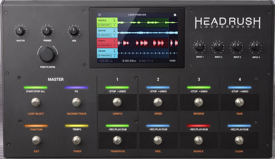 HeadRush Looperboard | 4-In/4-Out Looper with Intelligent Time-Stretch, Built-In FX, 7-inch Touchscreen, SD Card input, Click Track and Quantization, 300 Built-in Loops and USB Audio Connectivity