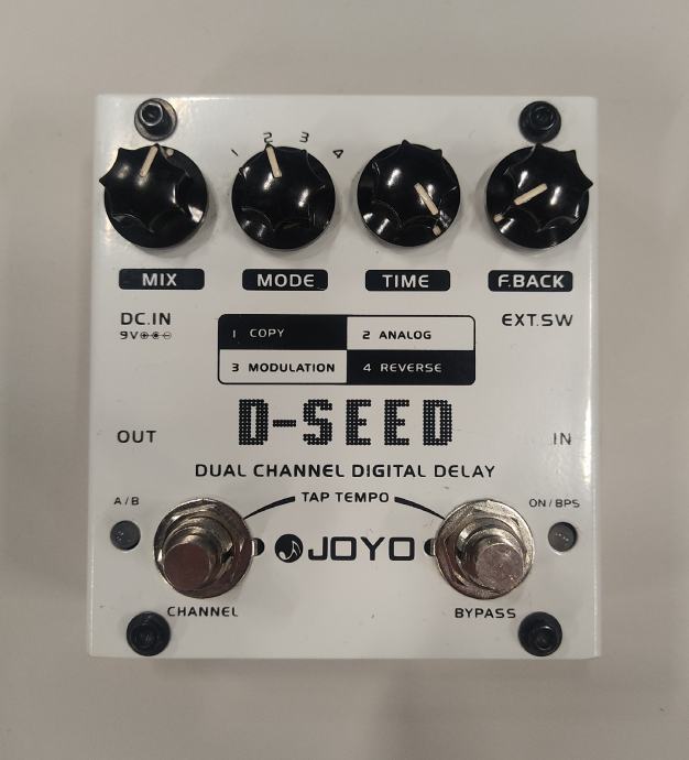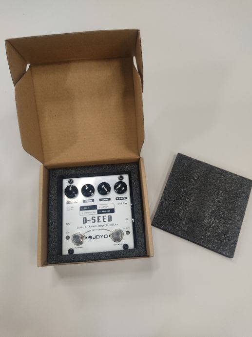 Prodajem pedalu Joyo D-SEED, Dual Channel Digital Delay. Pedala je korištena na pedalboardu i zato ima iza čičak koji se može skinuti. Prvi sam vlasnik, pedala dolazi u originalnoj ambalaži. Pedala je potpuno ispravna, može se napajati isključivo napajanjem od 9 V.