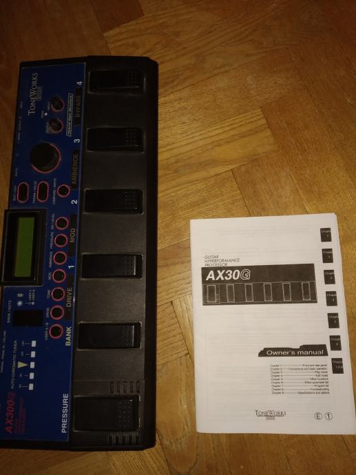 Uz multiefekt dolazi korisnički priručnik, ali kablovi i adapter za struju ne dolaze uz njega - potreban vam je uobičajeni adapter sa 220V na 9V (vidi se na zadnjoj slici kakav priključak bi trebao imati).