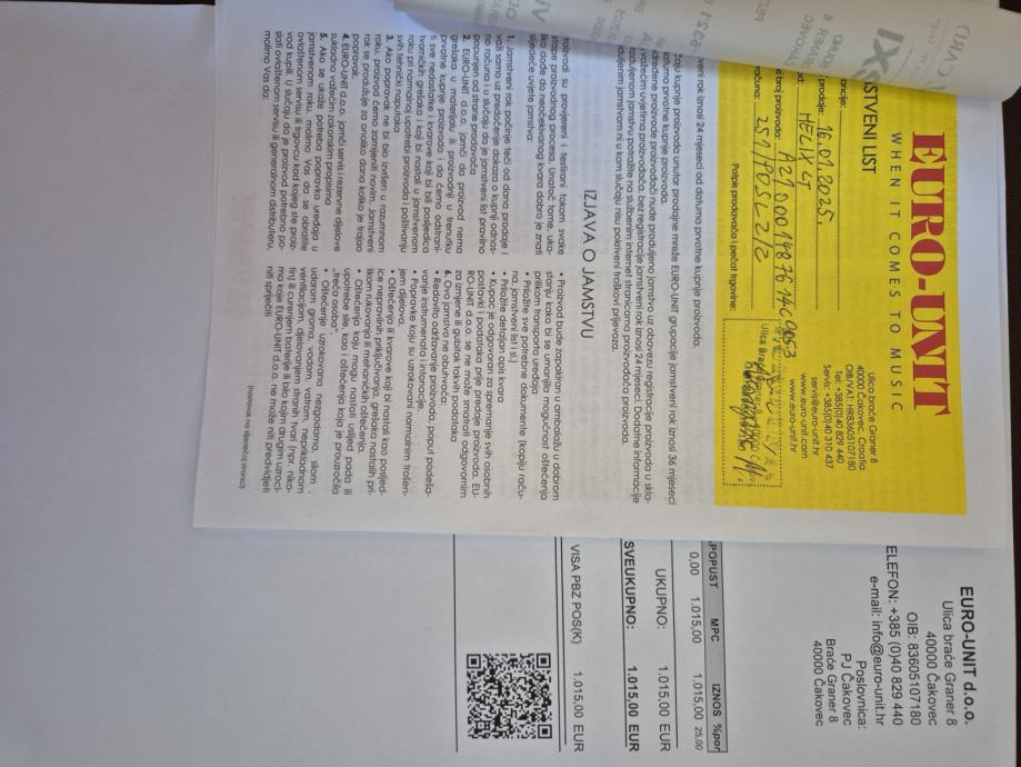 Kupljen u prvom mjesecu ove godine račun i garancija EuroUnit...