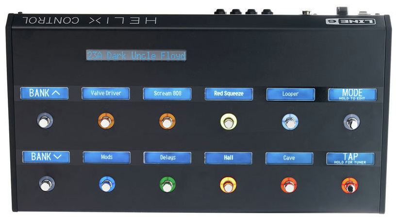 Line6 Helix Control Floorboard - Floor-Based Controller for Helix Rack Guitar Processor. Editirajte sve parametre svog Line6 Helix Rack-a "sa poda" uz pomoć footswitch-eva, LED prstenova i ekrana. Ubrzajte editiranje sa ovim Line6 Helix kontrolerom! Line6 HelixTM Rack možete kontrolirati sa bilo kojim MIDI uređajem, ali kontrola sa Helix Floorboardom otvara nove opcije kreativnosti. Sa Line6 Helix kontrolerom, gitarist koji ima Rack Helix može odabrati blok koji će editirati jednostavnim pritiskom footswitch-a ili kreirati custom lable-e s mogućnosti spajanja do tri expression pedale, te hands-free editiranje raznih parametara.