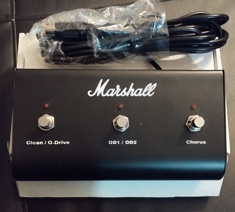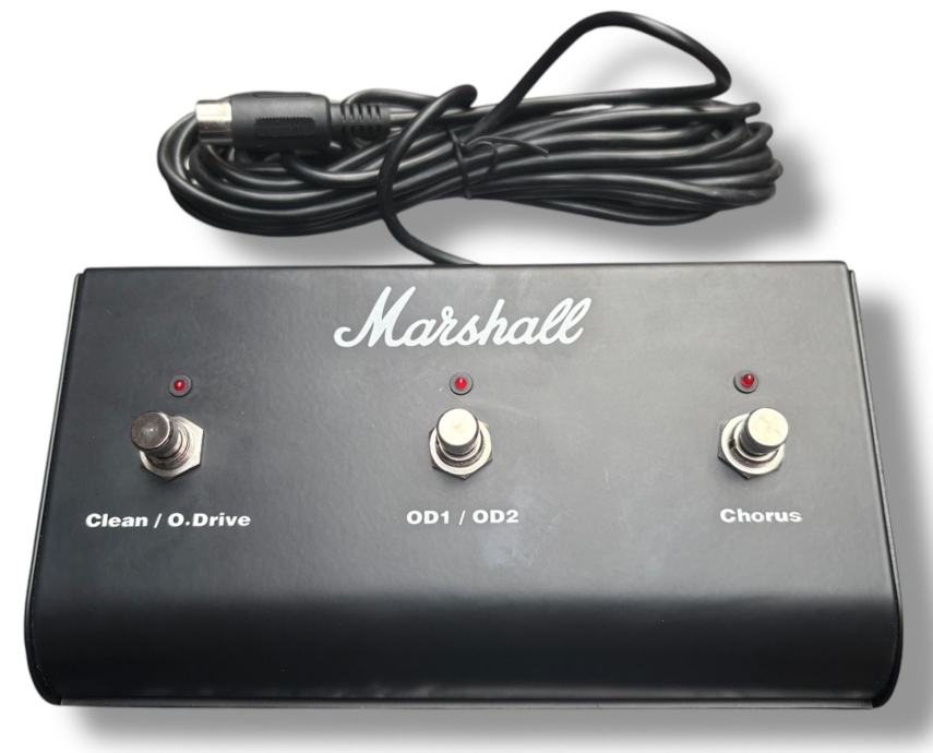 The Marshall PEDL-10014 Triple Footswitch with LED provides Clean/Overdrive, OD1/OD2 and Chorus switching.