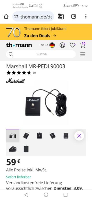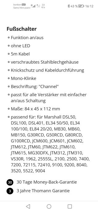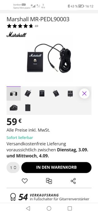 Prodajem navedenu footswitch pedalu marke Marshall. Pedala je on-off, za većinu Marshall pojačala, ali i za mnoge druge instrumente. Cijena nove pedale je 59 eura, plus poštarina za hrvatsku.