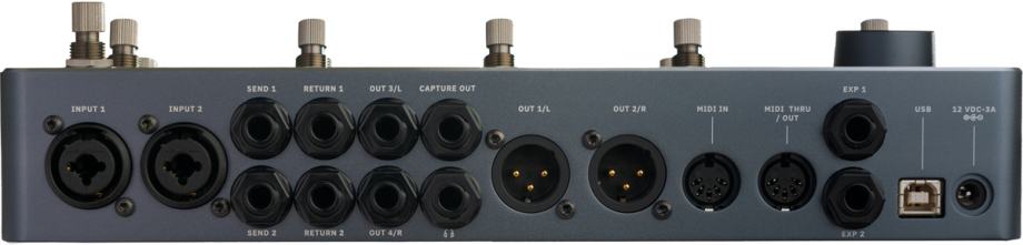 Dual expression inputs: expression pedals can be assigned to control wah, volume, and pitch shifts