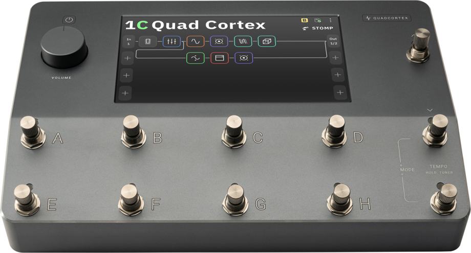Stomp Mode: transforms the Quad Cortex into an elegant analog-styled pedalboard. Here you can activate or disable any block in a rig just by assigning it to a dedicated switch and tapping.