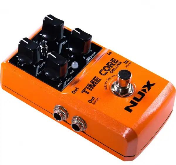 NUX Time Core Deluxe gitarska pedala sadrži 8 različitih vrsta delay efekta i looper od 40 sekundi, u jednom paketu! Možete birati između tape, digital, analog, ping pong, pan, modulation ili reverse delaya, i sve to u dva načina rada: Normal ili Tail. Također ima i mogućnost USB povezivanja, Tap Tempo funkciju, te Tone Lock funkciju zaključavanja trenutnih postavki.