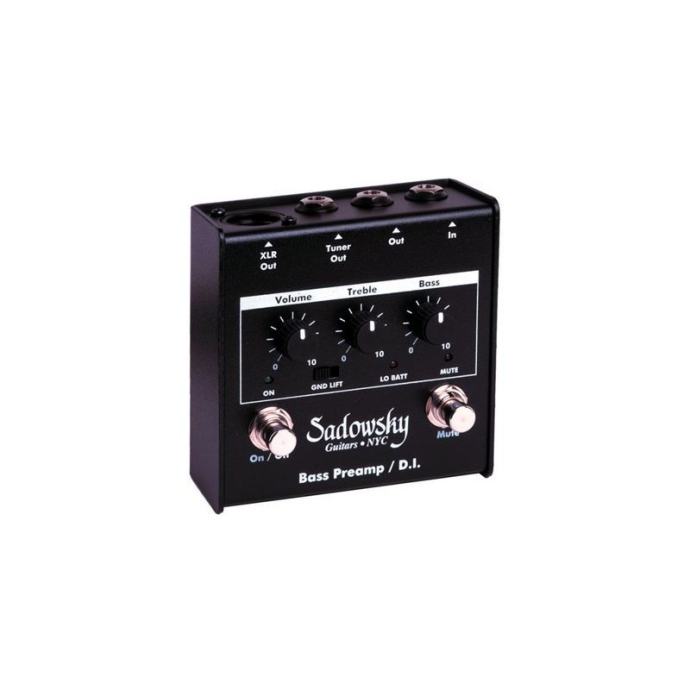 Sadowsky Preamp DI Pedala. Sadowsky Outboard Bass Preamp/DI pedala izuzetno je praktična podna pedala idealnih dimenzija. Jednostavna je za korištenje sa slijedećim kontrolama volumen, treble boost i bass boost, te LED indikatorom jačine baterije. Sadowsky Preamp DI Pedala idealna je za "vintage" bas gitare, te se preporučuje koristiti sa pasivnim bas gitarama i basevima sa aktivnim pickup-ima.