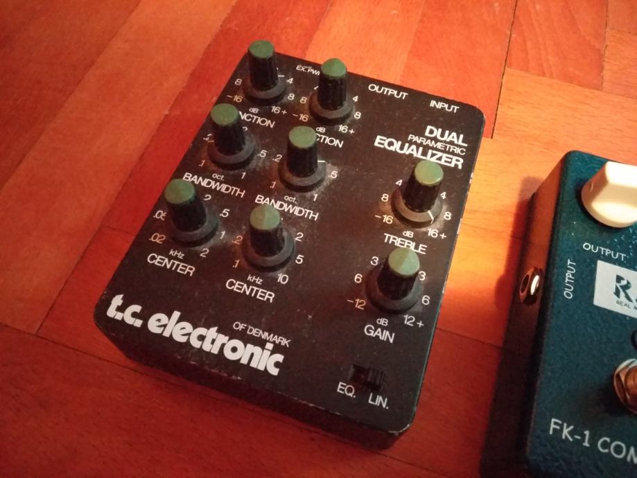 TC Electronic Dual Parametric Equalizer is a rare and highly sought after pedal. Made in Denmark, its a great tool for shaping your tone. It features frequency, bandwith and level adjustment in two bands, as well as treble and gain adjustment knobs. It was famously used by rock royalty such as The Edge (U2) and David Gilmour (Pink Floyd).