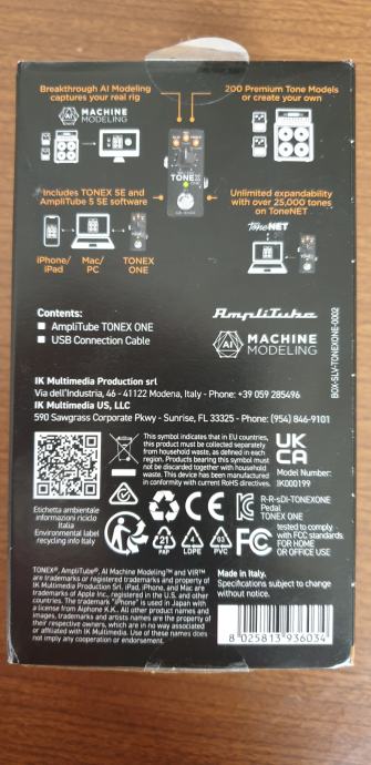 Prodajem IK Multimedia Tonex One, multiefekt / modeler pedalu u originalnoj ambalaži s USB-C kablom i aktivacijskom karticom za Tonex software.