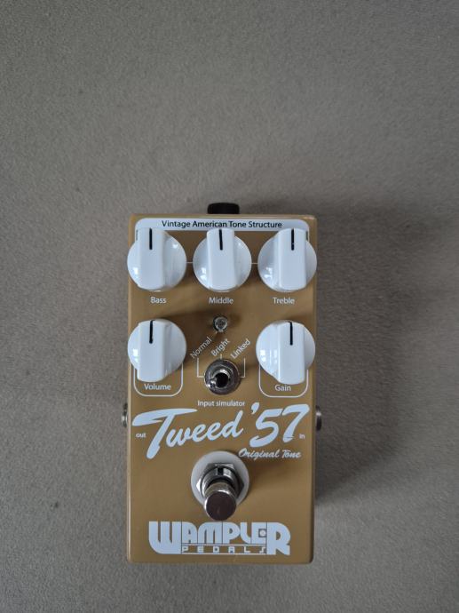 Bass / Middle / Treble: Adjust the amount of low-end / high-end frequencies to shape the gain stages, emulating the tonestack of classic 1950s “tweed” style amplifier, turning clockwise will increase the levels, counter clockwise to decrease.