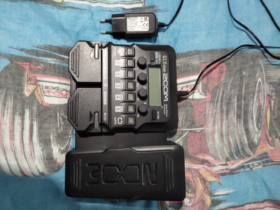 Zoom G1xfour novi efekt radio 15 minuta sveukupno 72 efekta 8 vrsta gitarskih pojačala štimer looper i ritam mašina. Može raditi na baterije ili na struju sa adapterom u muzikwru je takav efekt 120 bez adaptera koji košta 25 eur. (molim da pogledate na internet za cijene)