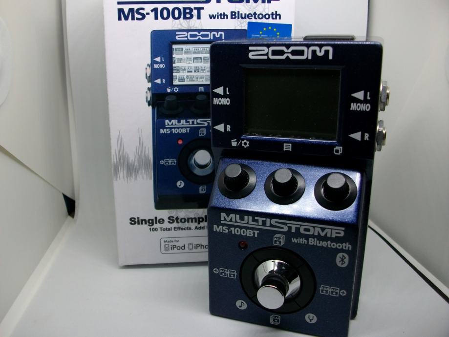 Najnapredniji model unutar Zoom-ove revolucionarne linije multi-stomp pedala. MS-100BT MultiStomp gitarska pedala s Bluetooth® tehnologijom objedinjuje snagu i fleksibilnost multi-efekt pedala i modelera pojačala s Bluetooth tehnologijom unutar samo jedne stompbox pedale. Kao dodatak na već unaprijed usnimljenih 100 stompbox efekata i pojačala, MS-100BT Vam omogućava korištenje Zoom-ove iOS StompShare aplikacije (dostupna za download u Apple AppStoreu). namijenjene za iPhone, iPad ili iPod Touch, mogućnost kupnje i downloadiranja dodatnih efekata putem Bluetooth® tehnologije. Pozor! Pedala dolazi bez adaptera.