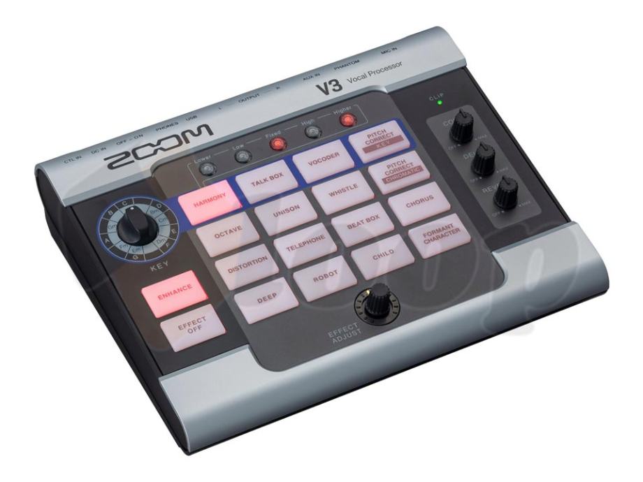 Zoom V3 je vokalni efekt procesor i iznimno je jednostavan za upotrebu uz profesionalnu kvalitetu zvuka. Idealan je za sve pjevače koji nastupaju ili objavljuju svoje skladbe putem streaminga, youtuba i sl. Može se povezati sa računalom putem USB kabela i koristiti kao audio sučelje. Raspolaže sa 16 različitih efekata, koji vaš glas mogu obogatiti harmonijama, poduplati oktavama, izobličiti do neprepoznatljivosti ili jednostavno samo oplemeniti za svaku produkciju. Zoom V3 ima mogućnost rada putem baterija, što ga čini vrlo fleksibilnim u najrazličitijim situacijama.